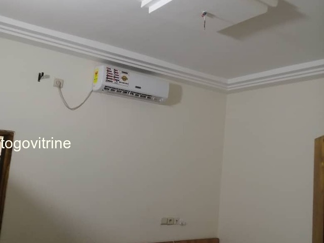 Appartement meublé à l'étage de 2 chambres salon climatisés avec placards WC douche cuisine interne équipée à Agoè Minamadou à 400 m du goudron.