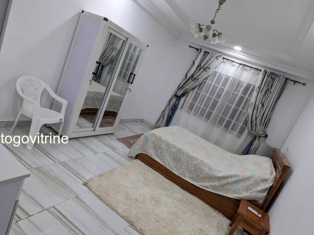 Bel appartement cour unique meublé de 03 chambres et 01 salon, 03 WC douche au total ( 02 interne et 01 dans le couloir pour servir en même temps visiteur), 01 cuisine bien propre équipée et large.