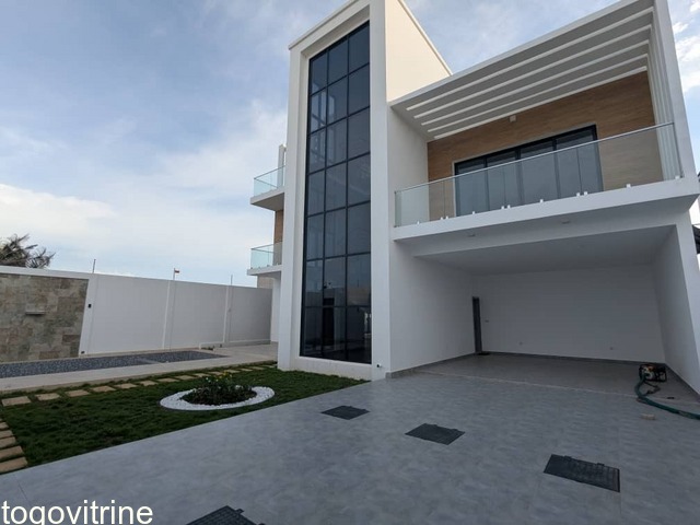 Découvrez cette somptueuse villa fraîchement construite, jamais habitée, située à Baguida avec une vue imprenable sur la mer.