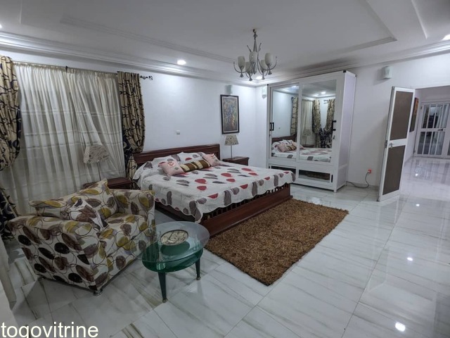 Bel appartement cour unique meublé de 03 chambres et 01 salon, 03 WC douche au total ( 02 interne et 01 dans le couloir pour servir en même temps visiteur), 01 cuisine bien propre équipée et large.